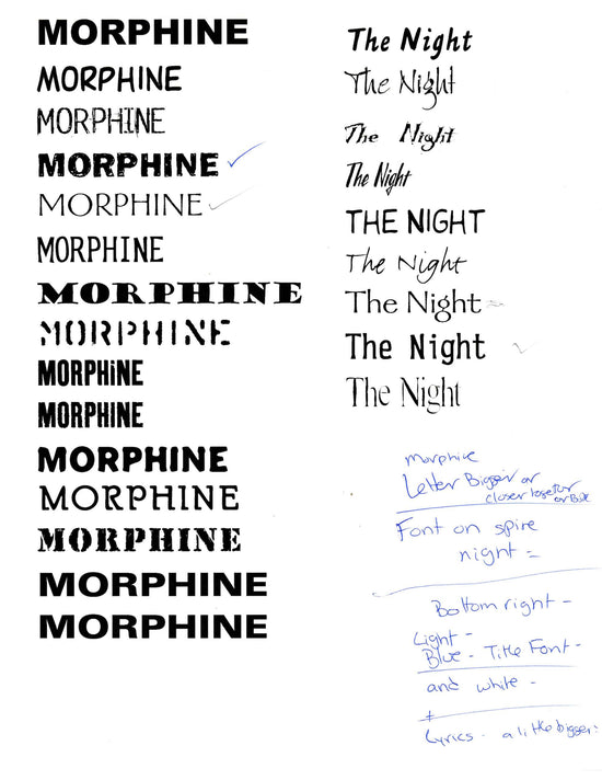 Here is a sampling of what it was like to create album and cassette art for "The Night." You can see various covers and fonts, along with Deb's notes on the final selection. Physical copies of these proofs were actually mailed to Deb, Dana and Billy instead of sent via email. Which version do you like? Let us know in the forum.